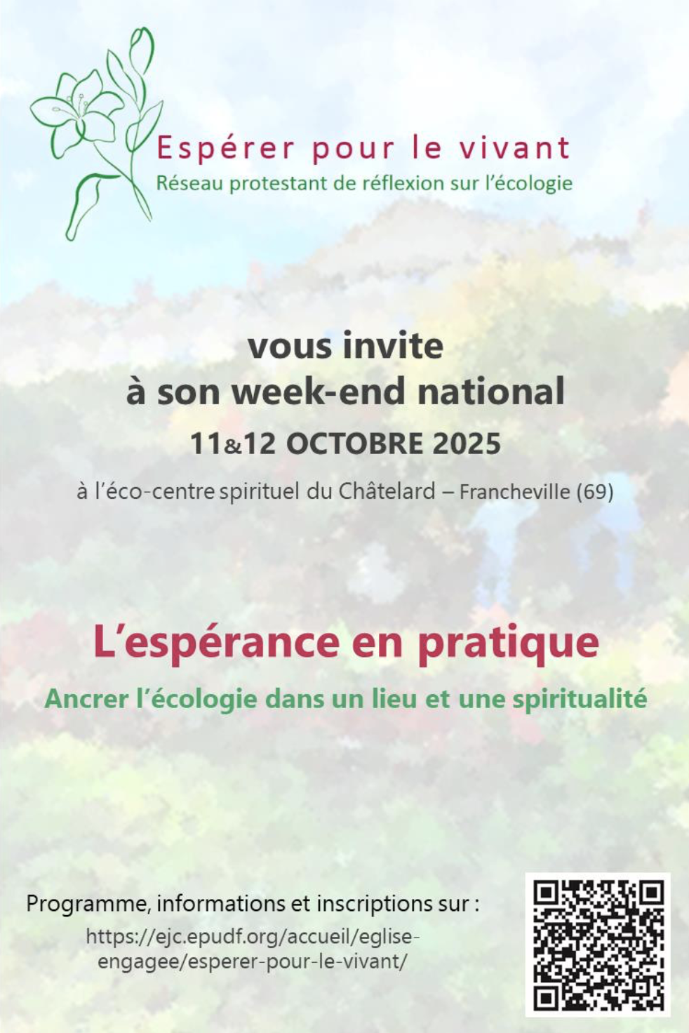 Pour plus d’informations et/ou vous inscrire : https://ejc.epudf.org/articles/esperer-pour-le-vivant/prochain-week-end-national/
